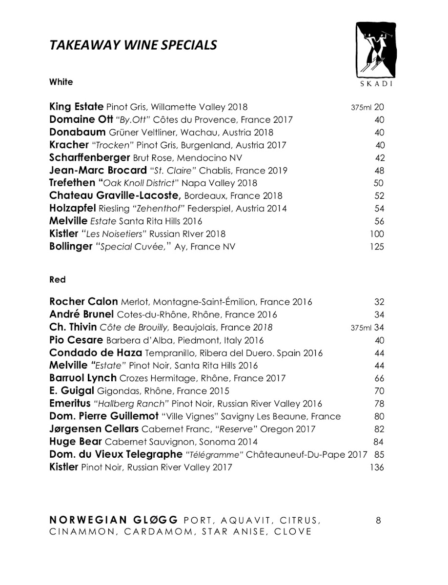 Welcome to Skadi, a hidden gem nestled in Mammoth Lakes, California, where Nordic-inspired cuisine takes center stage. The menu is a delightful blend of creativity and tradition, showcasing dishes like Seared Day Scallops paired with a lemon beurre blanc, and the tantalizing Pan Roasted Salmon that harmonizes roasted butternut squash with crisp pine nuts. Each plate is artfully presented, promising not just a meal, but an experience.